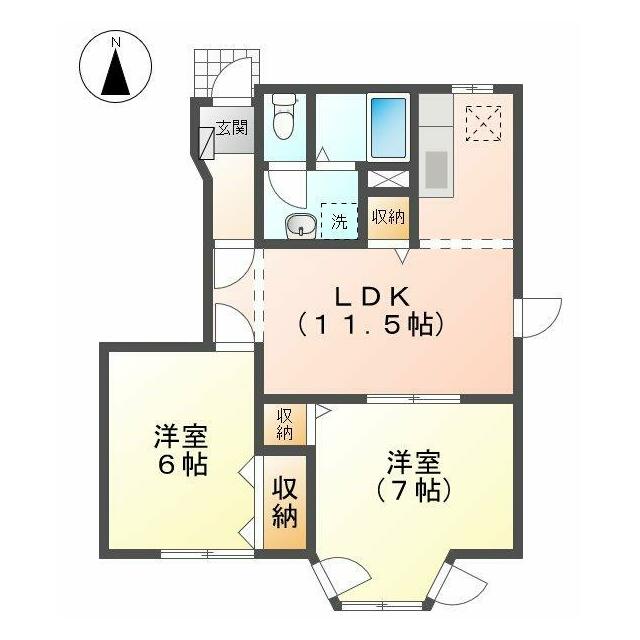 | 間取り | 2LDK(和6、洋6、LDK11.5) | 主要採光面 | 南 |